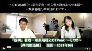 『黎明』著者・葦原瑞穂とCTPeakについて3回に渡ってお届けする新・よもやま話。初回「その1・出会い編」では、田久保と『黎明』そしてその著者・葦原瑞穂との出会いと、深いご縁を感じる不思議なエピソードなどをお届けします。(その2・その3予告動画付き)