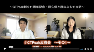 CTPeak創立11周年記念動画の第1弾。その内容は… ● 霊的世界でトレンド入り? / ● 田久保の反省点・第1位! / ● 時代を先取るニューサービス! / ●「未来の自分」に誇れる仕事 / ● 判断基準は「魂のOK」 / ● CTPeakプライドの真剣勝負