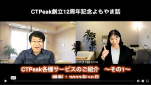 CTPeak創立12周年を記念して現在開催されている、各種サービスの50%OFF(半額)キャンペーンに関連し、それぞれのサービスの内容や田久保の想い、制作の背景などについてご紹介
